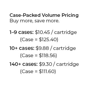 (Case = $118.56 USD) - Orders over $5,000 — $9.30 USD / cartridge (Case = $111.60 USD)